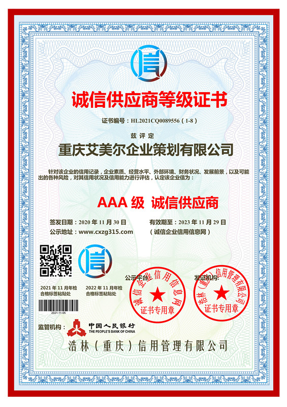 重庆PA直营企业策划有限公司被被评级为诚信供应商,艾美策划核心策划项目:重庆企业策划,重庆企业策划公司,重庆招商策划,重庆企业宣传片,艾美策划 使命必达